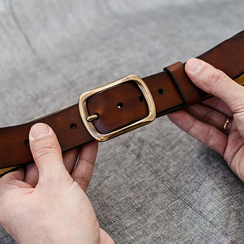 Для поддержания винтажной отделки, латунная пряжка и винты состарены.