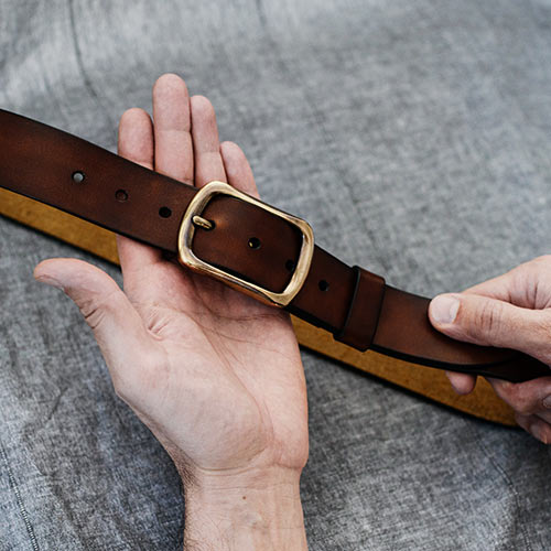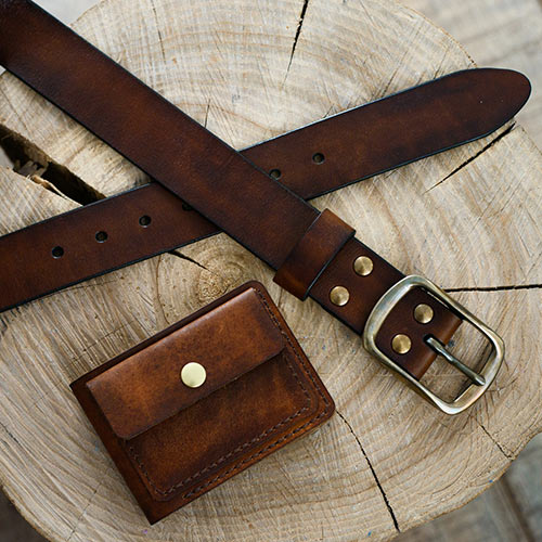 Плотная бычья кожа с природной фактурой. Конячный цвет с ручной винтажной тонировкой.