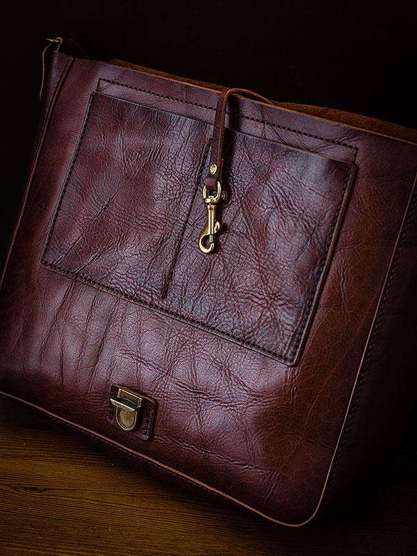 Сумка сшита из размятой вручную кожи. Все морщины природные — такую фактуру можно медитативно долго рассматривать и хочется мять пальцами.