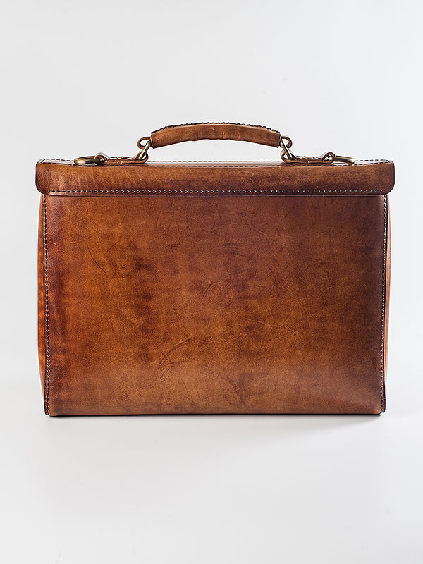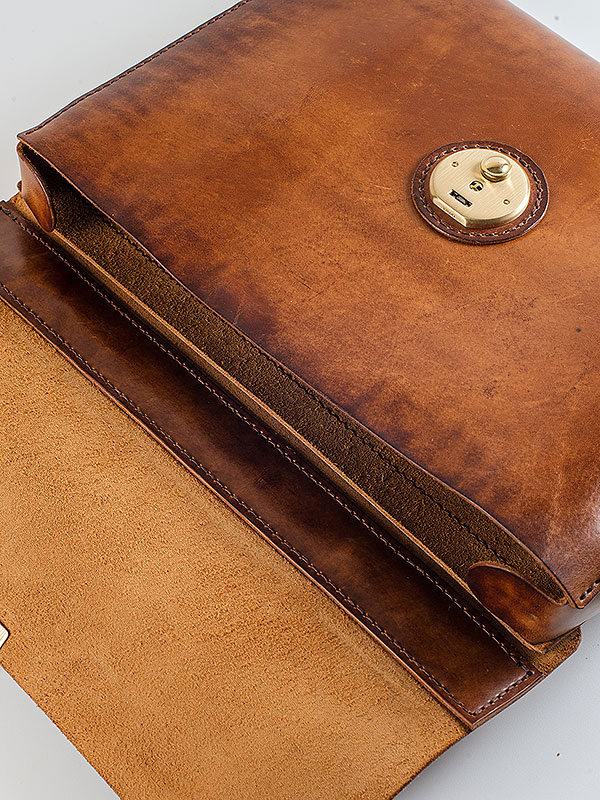 В портфеле нет ткани и картона — только кожа. Клапан портфеля усилен скрытой стальной полосой — не вытянется со временем.